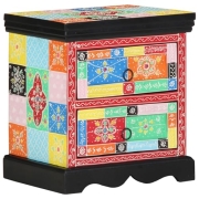vidaXL Bunter Patchwork-Nachttisch mit Zwei Schubladen für Aufbewahrung aus Naturholz, Nachtkommode im Bohemian Stil, Möbel für Schlafzimmer, kompakt, ideal für kleine Räume, Deko, Schublade