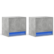 vidaXL Wand Nachttisch, Nachtschrank mit LED-Leuchten Wandmontage, Nachtkommode mit Stauraum Hängend, Nachtkonsole Wandschrank für Schlafzimmer, 2 STK. Betongrau