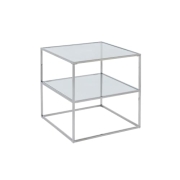 Vente-unique-Nachttisch mit 2 Ablagen - Glas & Stahl - Silberfarben - KOHANNA