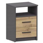 MATKAM Nachttisch 2S in klassischer Optik | H/B/T 41 x 40 x 35 cm, mit Zwei Schubladen | In verschiedenen Ausführungen erhältlich (Anthrazit Grau-Wotan Eiche)