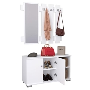 VCM Holz Sitzbank | 2-TLG.-Set | Schuhschrank | Maße: H. 82 x B. 90 x T. 33 cm | Wandpaneel mit 3 Haken und einem Spiegel| 2 Drehtüren | 2 Fächer | 2 offene Fächer - Gados XL Weiß