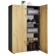 VCM Holz-Schuhschrank | Maße: H. 110 x B. 70 x T. 39 cm | Allzweckschrank | 5 Fächer | 2 Drehtüren– Lona Anthrazit/Honig-Eiche