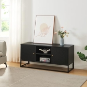 [en.casa] TV Schrank Janakkala Lowboard mit 2 Türen TV Board Schwarz Fernsehtisch mit 2 offenen Fächern TV Kommode Fernsehschrank 120 x 40 x 55 cm Metall