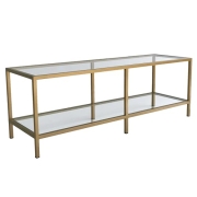 Locelso TV Stand | 100% gehärtetes Glas | 4mm Dicke | 100% Metallrahmen | Zahlreiche Ablagen | Gold