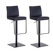 CLP 2er Set Barhocker Panama Mit Kunstlederbezug I Höhenverstellbarer Barstuhl I Thekenhocker Mit Lehne Und Fußstütze, Farbe:schwarz, Gestell Farbe:schwarz