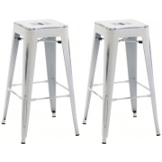 CLP 2er Set Barhocker Joshua I Stapelbare Tresenhocker aus Metall I Barstühle mit Fußstützen I Sitzhöhe 76 cm I Stapelhocker, Farbe:antik weiß