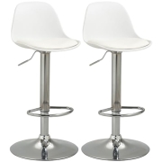 HOMCOM Barhocker 2er Set, Gepolstert Barstuhl mit Stahlgestell, Lehne, Höhenverstellbar Küchenstühle mit Fußstütze 360° Drehbar Tresenhocker für Küche, Wohnzimmer, Esszimmer, Kunstleder Weiß