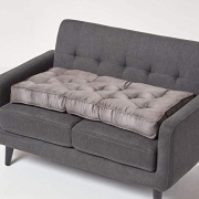 Dick und fest gepolstertes langes Sitzkissen für 2-Sitzer-Sofas mit Tragegriff und gestepptem Velours-Bezug. Größe ca.: B 100 x T 48 x H 10 cm. Farbe: Grau. Dauerhafter Halt: Das bequeme Sitzkissen…