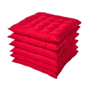 Homescapes 6er Set Stuhlkissen 40 x 40 cm, rot, Sitzkissen mit Bändern und Knopfverschluss, einfarbige Auflagen für Stühle mit Bezug aus 100% Baumwolle und weicher Polyester-Füllung