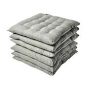 Set aus 6 Sitzkissen mit Bändern und praktischem Knopfverschluss. Größe je Stuhlpolster: ca. 40 x 40 x 5 cm. Farbe: grau. Obermaterial: 100% Baumwolle. Die Stuhlauflagen sind hautfreundlich,…