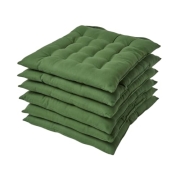 Set aus 6 Sitzkissen mit Bändern und praktischem Knopfverschluss. Größe je Stuhlpolster: ca. 40 x 40 x 5 cm. Farbe: grün/olivgrün. Obermaterial: 100% Baumwolle. Die Stuhlauflagen sind hautfreundlich…