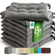 etérea 8er Set Sitzkissen Outdoor 40x40 mit Bändern - Stuhlkissen Grau für Gartenstuhl & Innenbereich - waschbare Sitzauflagen Gartenmöbel - 8 Stück Kissen 40x40 cm - Grau