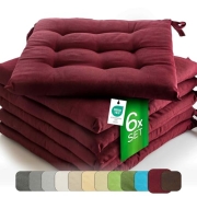 etérea 6er Set Sitzkissen Outdoor 40x40 mit Bändern - Stuhlkissen Bordeaux für Gartenstuhl & Innenbereich - waschbare Sitzauflagen Gartenmöbel - 6 Stück Kissen 40x40 cm - Bordeaux