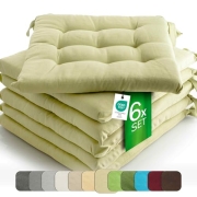 etérea 6er Set Sitzkissen Outdoor 40x40 mit Bändern - Stuhlkissen Minze für Gartenstuhl & Innenbereich - waschbare Sitzauflagen Gartenmöbel - 6 Stück Kissen 40x40 cm - Minze