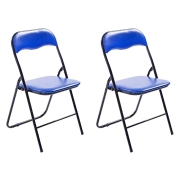 CLP 2er Set Klappstuhl Felix Gepolstert I Küchenstuhl Mit Metallgestell I Kunstleder PVC Sitz Gepolstert I Stühle Klappbar I Campingstühle, Farbe:blau/schwarz