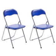 CLP 2er Set Klappstuhl Felix Gepolstert I Küchenstuhl Mit Metallgestell I Kunstleder PVC Sitz Gepolstert I Stühle Klappbar I Campingstühle, Farbe:blau/Silber