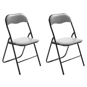 CLP 2er Set Klappstuhl Felix Gepolstert I Küchenstuhl Mit Metallgestell I Kunstleder PVC Sitz Gepolstert I Stühle Klappbar I Campingstühle, Farbe:grau/schwarz