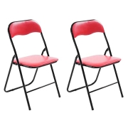 CLP 2er Set Klappstuhl Felix Gepolstert I Küchenstuhl Mit Metallgestell I Kunstleder PVC Sitz Gepolstert I Stühle Klappbar I Campingstühle, Farbe:rot/schwarz
