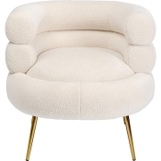 Kare Design Cocktailsessel Livelli, Weiß, 150kg max. Belastbarkeit, Sessel mit Armlehne, Polstersessel, Glamour, Moderner Sessel für Wohnzimmer, Stahl Beine in Gold, 77,5x74x73,6 cm (H/B/T)