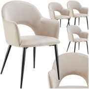 tectake® Samt Stuhl, Esszimmerstuhl mit Samtstoff, Küchenstühle modern, gemütlicher Sessel Wohnzimmer, Armlehnstuhl Esszimmer, Dining Lounge, Schminktisch Stuhl - Creme/schwarz, 4er Set