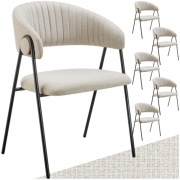 tectake 800872 8er Set Esszimmerstuhl mit Armlehnen, gepolsterte Stoff Sitzfläche, Schwarze Metallbeine, für Wohnzimmer, Esszimmer, Küche und Büro (Creme)