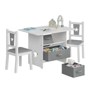 WOLTU Kindersitzgruppe, 1 Kindertisch und 2 Stühle, Kindertisch mit Stauraum, Kindermöbel Set aus Holz, mit 3 Aufbewahrungskörben, Sitzgruppe für Kinder, Grau + Weiß