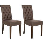 CLP 2er Set Esszimmerstühle Lisburn I Samt I Stoff I Polsterstühle Gesteppt Chesterfield Design, Farbe:braun, Material:Stoff