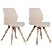 CLP 2er Set Stuhl Luna Kunststoff I Stoff I Samt I Kunstleder I Lehnstuhl mit Holzgestell, Farbe:Creme, Material:Kunstleder