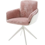 DELIFE Esszimmerstuhl Luan-Flex mit Armlehnen Kreuzgestell breit Weiß Materialmix Echtleder Weiß-Rosé 360° drehbar Wippfunktion