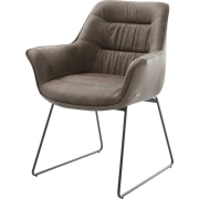DELIFE Esszimmerstuhl Heira-Flex mit Armlehnen Kreuzgestell breit Edelstahl Materialmix Schlamm 360° drehbar Taschenfederkern