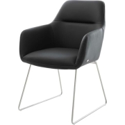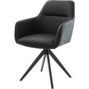 DELIFE Polsterstuhl Zelia-Flex mit Armlehnen Kreuzgestell konisch Edelstahl Echt-Leder Schwarz Taschenfederkern