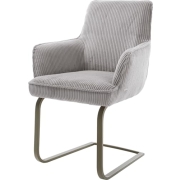 DELIFE Schwingstuhl Heira-Flex mit Armlehnen Freischwinger flach Effektfinish Titan Cord Silbergrau Taschenfederkern