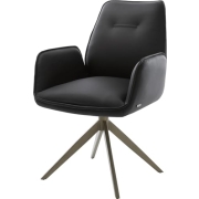 DELIFE Esszimmerstuhl Nube-Flex mit Armlehnen Kreuzgestell breit Effektfinish Titan Echt-Leder Schlamm 360° drehbar Taschenfederkern