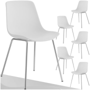 tectake® 6er Set Esszimmerstühle, modernes Design, Kunststoff Stühle mit schlanken Stahlbeinen, ergonomische Küchenstühle mit rutschfesten Kappen, bequemer Bürostuhl, leichte Reinigung - weiß/Chrom