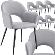 tectake® 6er Set Armlehnstuhl in Samtoptik, gepolsterte Esszimmerstühle, bis 120 kg belastbar, Stühle Esszimmer mit komfortabler Polsterung, Küchenstuhl, Esszimmerstuhl mit Stahlbeinen - hellgrau