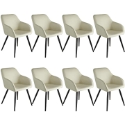 tectake 800872 8er Set Esszimmerstuhl mit Armlehnen, gepolsterte Stoff Sitzfläche, Schwarze Metallbeine, für Wohnzimmer, Esszimmer, Küche und Büro (Creme)