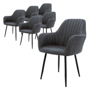 ML-Design 6er Set Esszimmerstühle mit Rücken- und Armlehnen, Anthrazit, Küchenstühle mit PU-Kunstleder-Bezug, Polsterstühle mit Metallbeinen, Ergonomische Stühle für Esstisch, Wohnzimmerstühle Stuhl