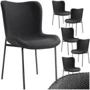 tectake® 6er Stuhl Set, Polsterstuhl für Küche, Esstisch, Sessel Schminktisch, Cocktailsessel, Elegante Esszimmerstühle oder Wohnzimmerstühle für edles Dining - Webstoff schwarz/schwarz