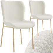 tectake® 2er Stuhl Set, Bouclé Stoff, Schalensitz Stuhl für Küche, Esstisch, Sessel Schminktisch, Cocktailsessel, Elegante Esszimmerstühle oder Wohnzimmerstühle für edles Dining - Bouclé weiß/Gold