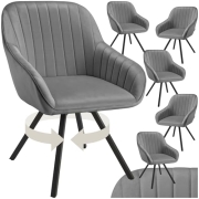tectake® drehbare Esszimmerstühle mit Armlehne, Schalenstuhl ergonomisch mit Samt Bezug, gesteppt, Stühle drehbar für Wohnzimmer, Esstisch, Arbeitszimmer, Schminktisch, Küchenstühle - 6er Set, grau