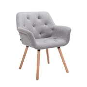 CLP Esszimmerstuhl Cassidy Mit Stoffbezug Und Sesselförmigem Gepolstertem Sitz I Retrostuhl Mit Armlehne Und 45 cm Sitzhöhe, Farbe:grau, Gestell Farbe:Natur