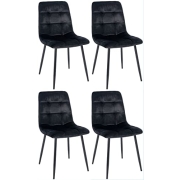 CLP 4er Set Esszimmerstühle Antibes I Küchenstühle mit Samtbezügen gepolstert I Metallbeine mit Bodenschonern I Belastbar bis 150 kg, Farbe:schwarz