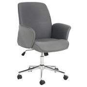 Bürodrehstuhl im eleganten Stil, geeignet für stundenlange Arbeit am Schreibtisch Bezug aus hochwertigem, grauem Stoff. Robustes Gestell und komfortable Armlehnen Ergonomische Form der Rückenlehne…