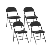 Vier moderne und bequeme Klappstühle in klassischem Schwarz Stabile Verarbeitung und qualitativ hochwertiges Material und dabei pflegeleicht Leicht zu transportieren, einfach und zügig aufgestellt…