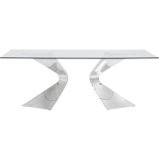 Rechteckiger, großer Glastisch mit dekorativ-geschwungenen, chromfarbigen Stahl-Beinen für bis zu 8 Personen Dieser Tisch ist ein echtes Showpiece fürs Ess- oder Wohnzimmer und bringt luxuriösen…