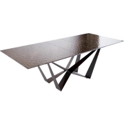 DELIFE Esszimmertisch Edge Reliefglas Rauchschwarz 3D-Design 180-220x100 Spider Flachstahl Schwarz ausziehbar