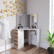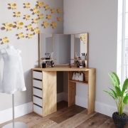 Vicco Frisiertisch für die Ecke Arielle, Kosmetiktisch mit Spiegel, Weiß/Sonoma/Sonoma, 110 cm