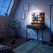 Vicco Schminktisch Fyrk, Kosmetiktisch mit Spiegel, Eiche rustikal/Schwarz, 80 cm mit LED-Lampen