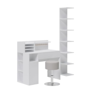 Vicco Schreibtisch, Arbeitstisch für das Büro, Weiß, 3 Teile, mit Bücherregal und Hocker