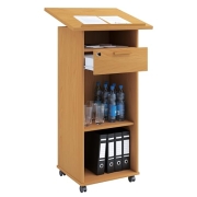 VCM Holz mobiles Rednerpult | Maße ca. H. 108 bis 120 cm x B. 60 cm x T. 50 cm | rollbar mit Schublade | Stehtisch - Melta Buche